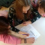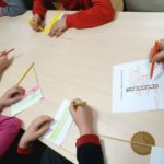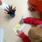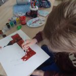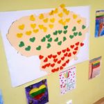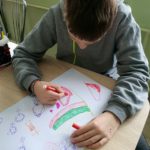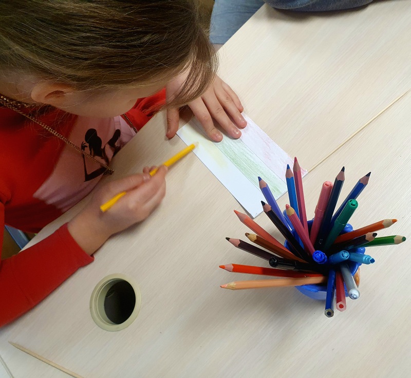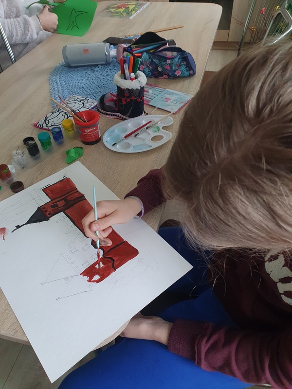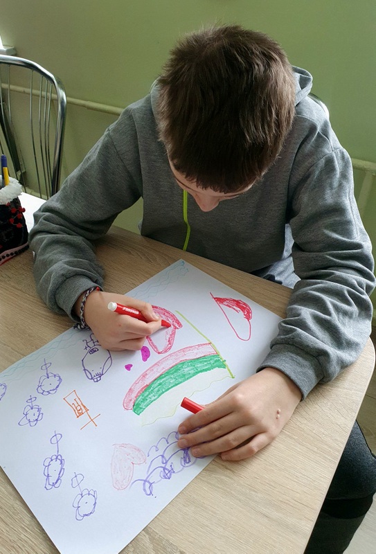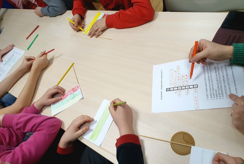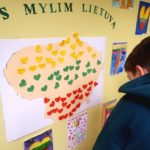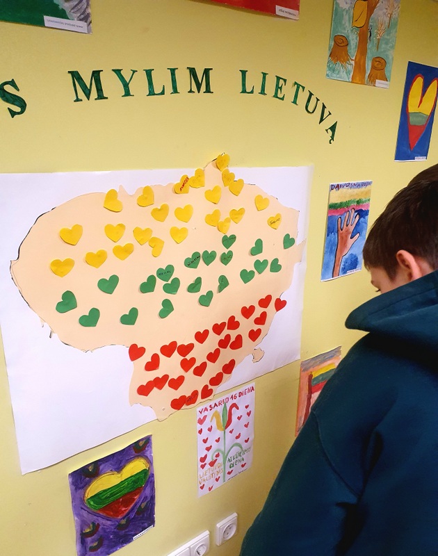 spalvino Lietuvos trispalves vėliavėles, klijavo širdeles su linkėjimais Lietuvai.