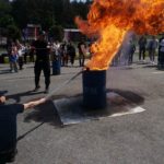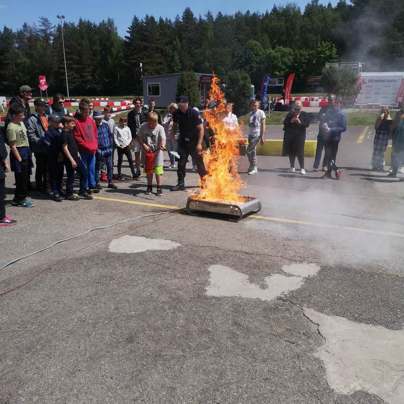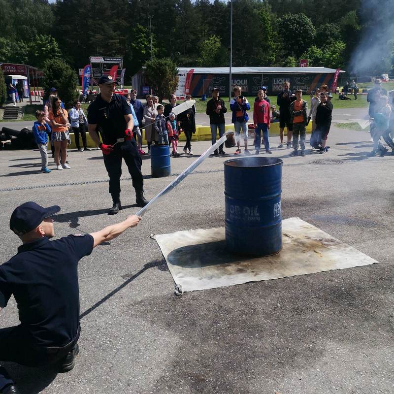 stebėjo ugniagesių gelbėtojų demonstruojamą mokomąją programą.