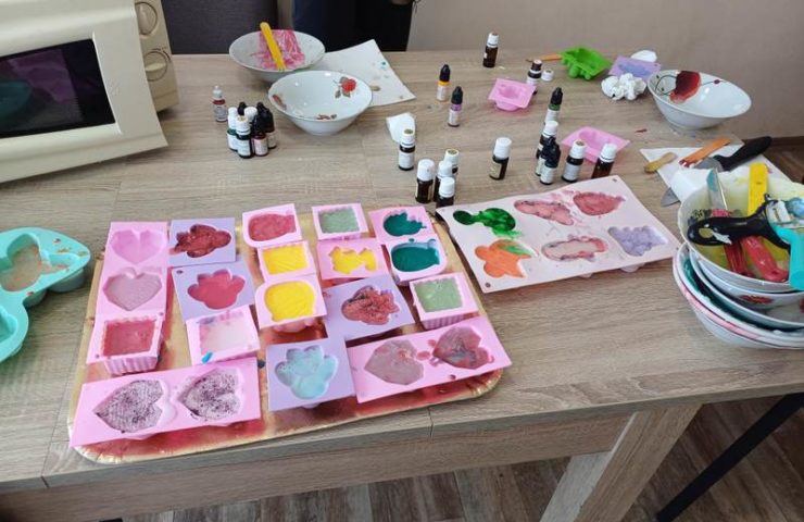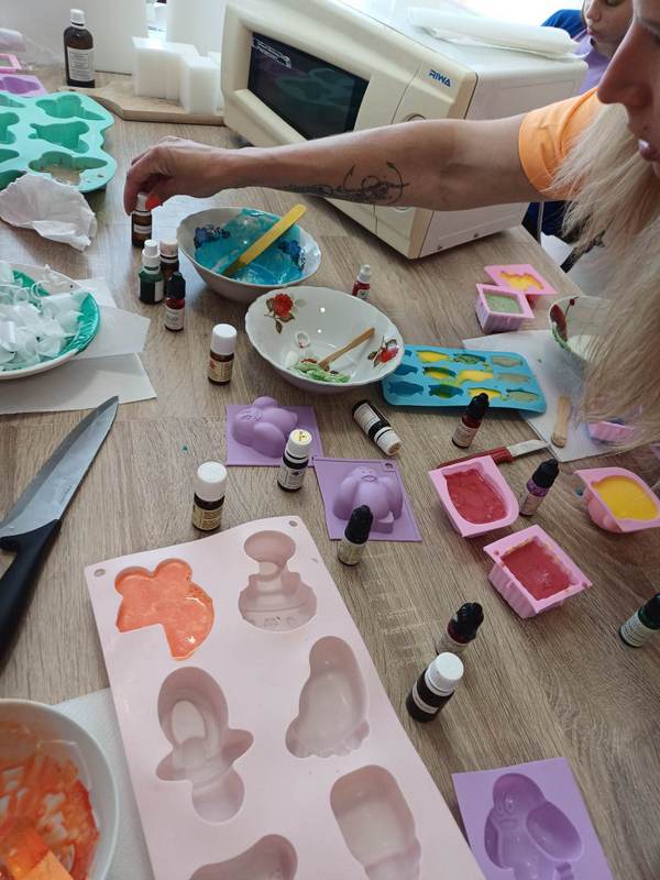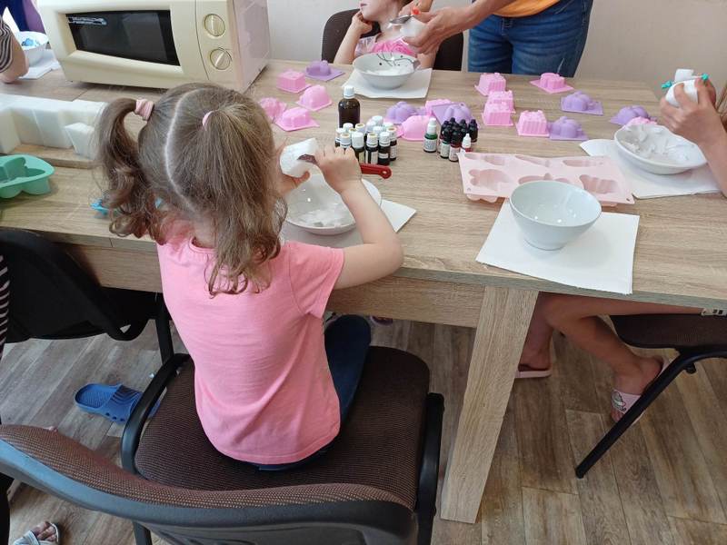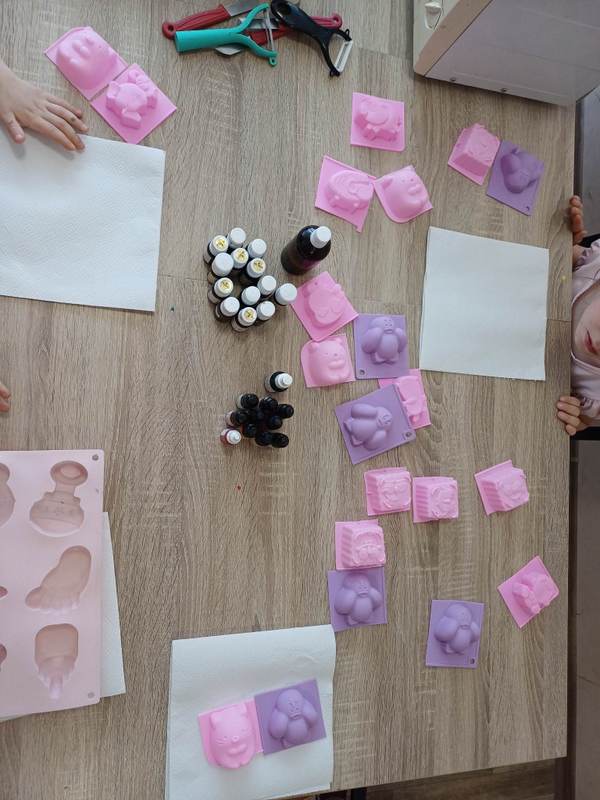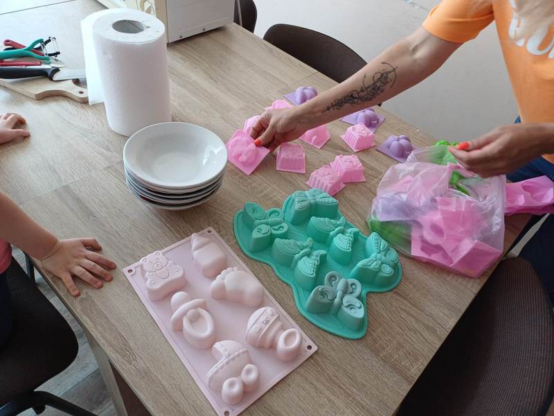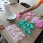Edukacijos metu vaikai gamino rankų darbo muiliukus iš pasirinktų formų, spalvų ir ornamentų,