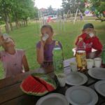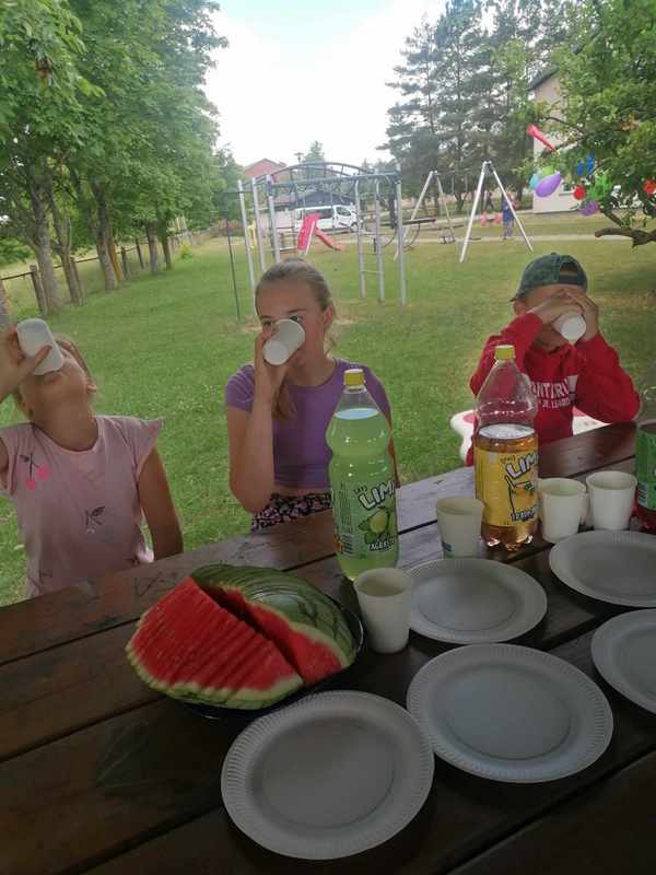 Gerai nusiteikę ir kupini gerų emocijų vaikai dalinosi įspūdžiais prie saldaus vaišių stalo.