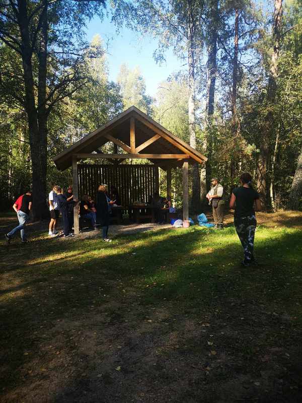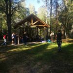 Popietės metu Šimonių girios aikštelės laužavietėje vaikai, kartu su darbuotojais, kūrė laužą, kepė dešrelės, vaišinosi prie bendro vaišių stalo.