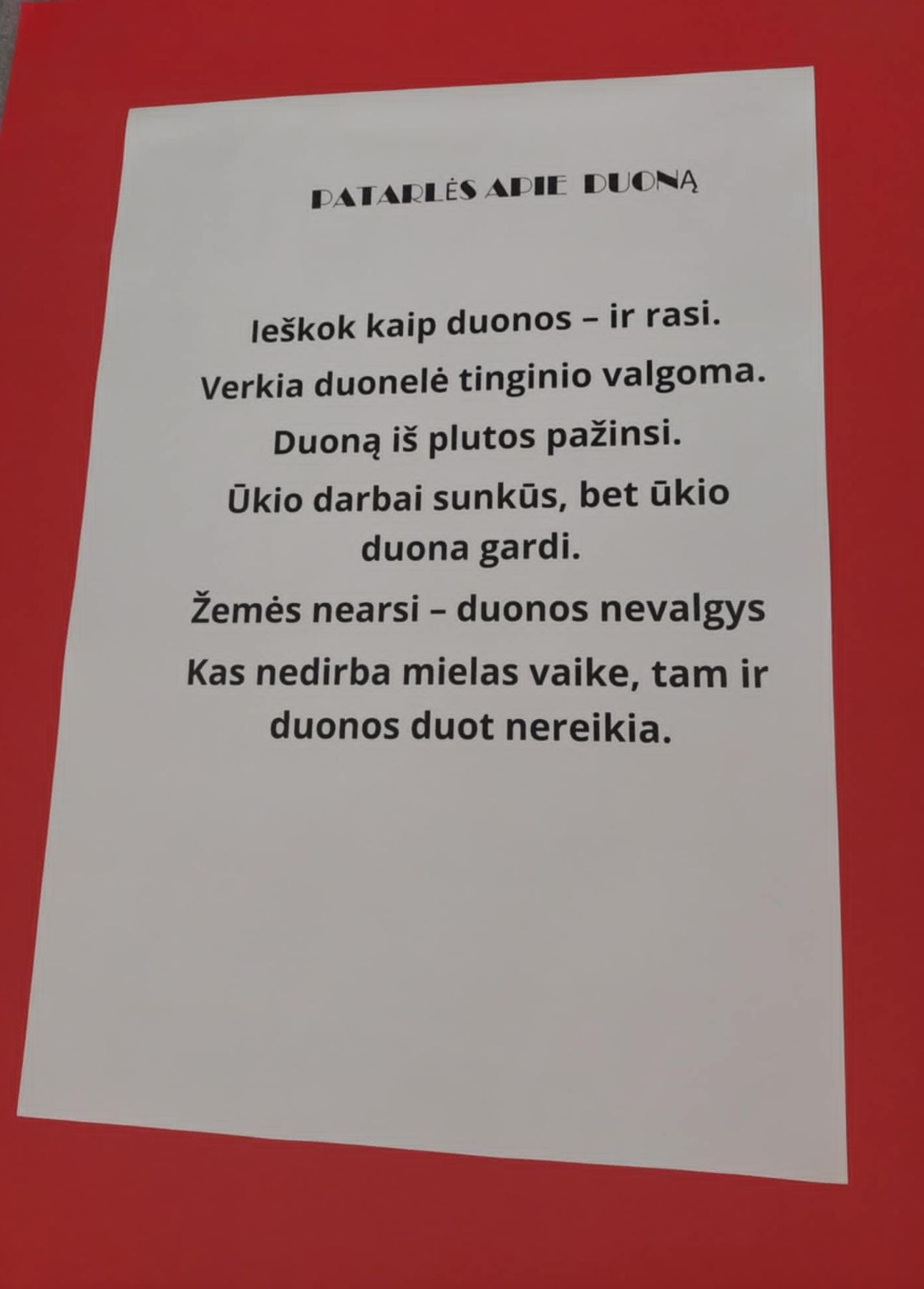 primenanti mums apie duonos reikšmę, šventumą ir pagarbą ilgam bei