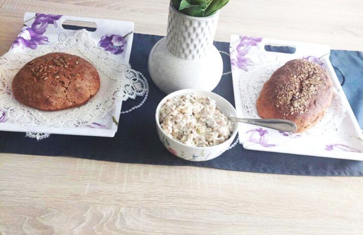 darbuotojais kepė naminę duoną, ruošė salotas su kepta duona, su meile