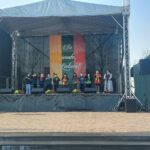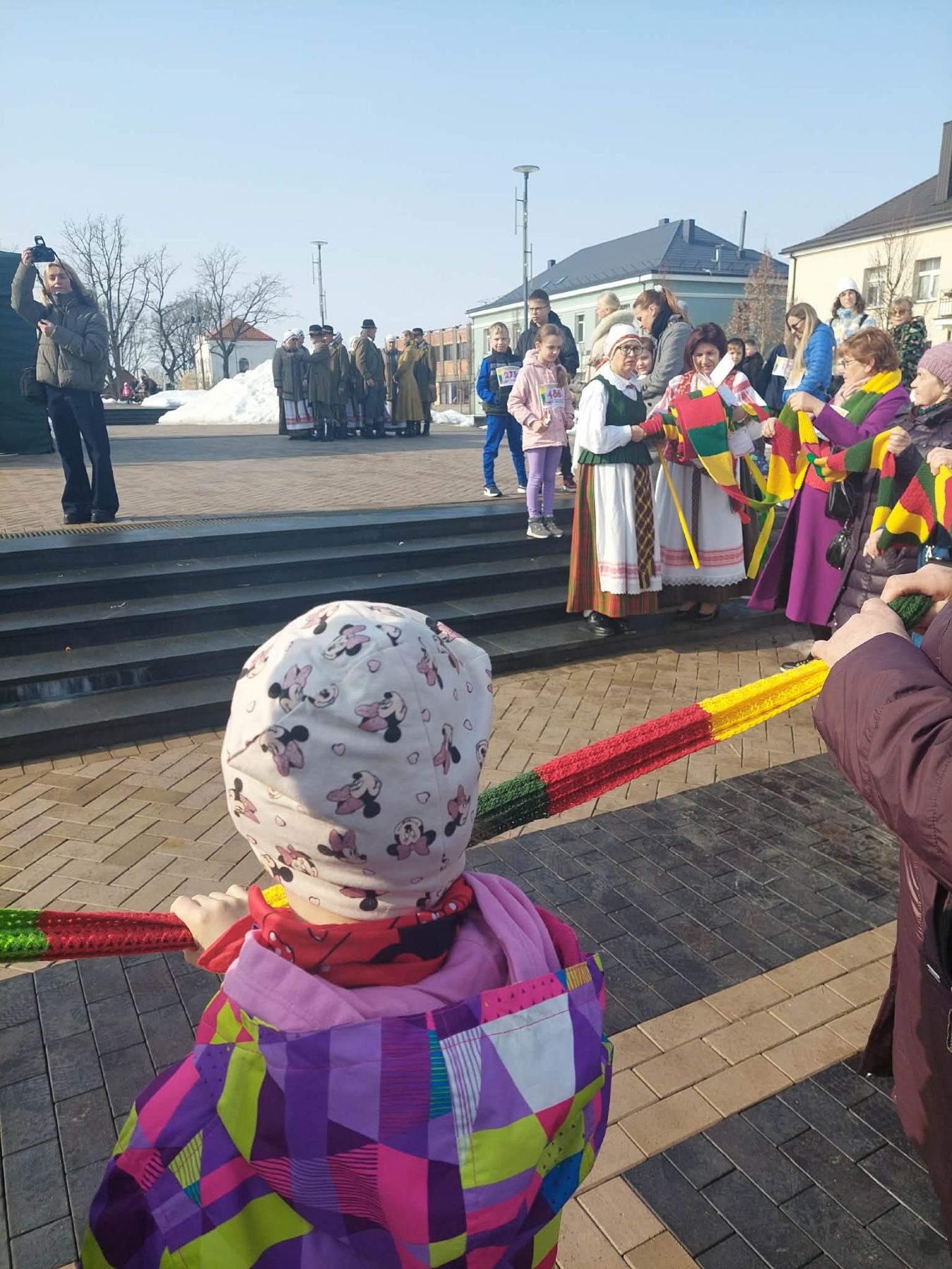 pravažiavimą. Visi drauge apsijungėme tiesdami numegztą trispalvę juostą