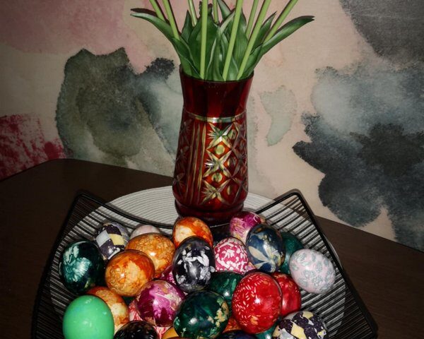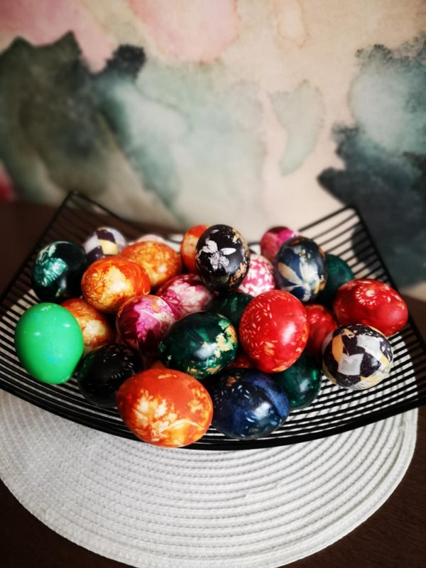 Vaikų rankose paprasti kiaušiniai virto spalvingais meno kūriniais, o